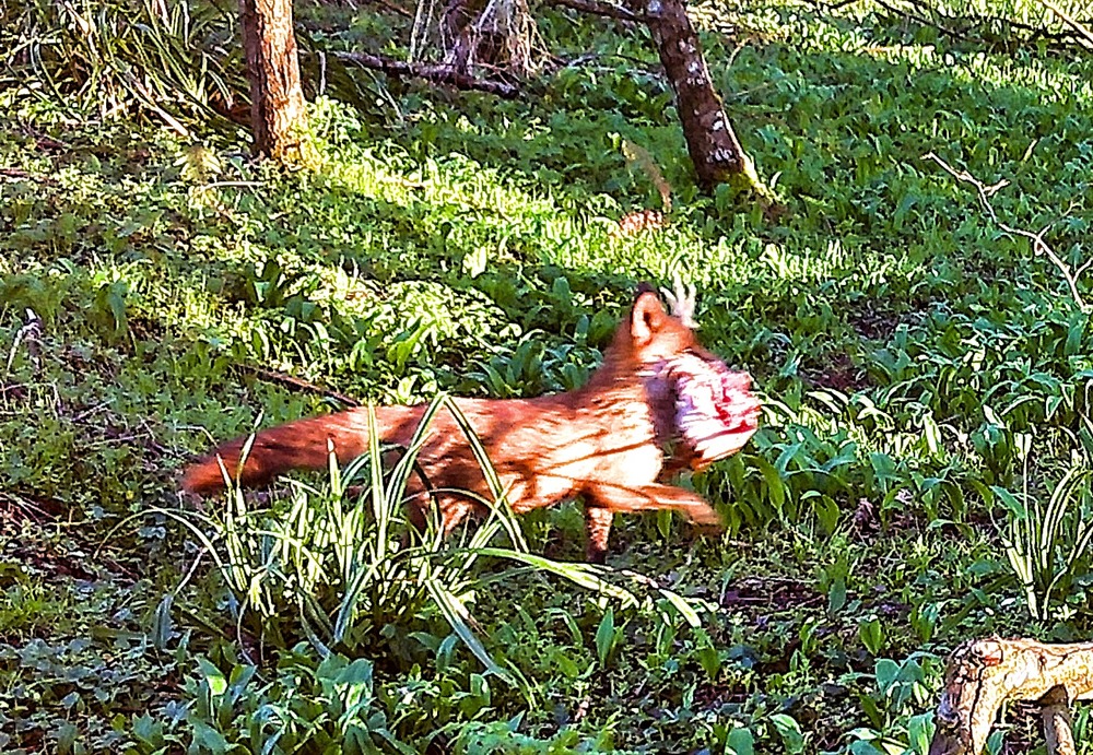 We've also recently bought some Cherry Valley Ducks as they are very entertaining and we hope they will produce some delicious eggs, for now we are also keeping them safely enclosed behind wire to keep them safe from Foxy. The photo of Foxy was captured by our nature cam when she was running through the woods carrying a pheasant.