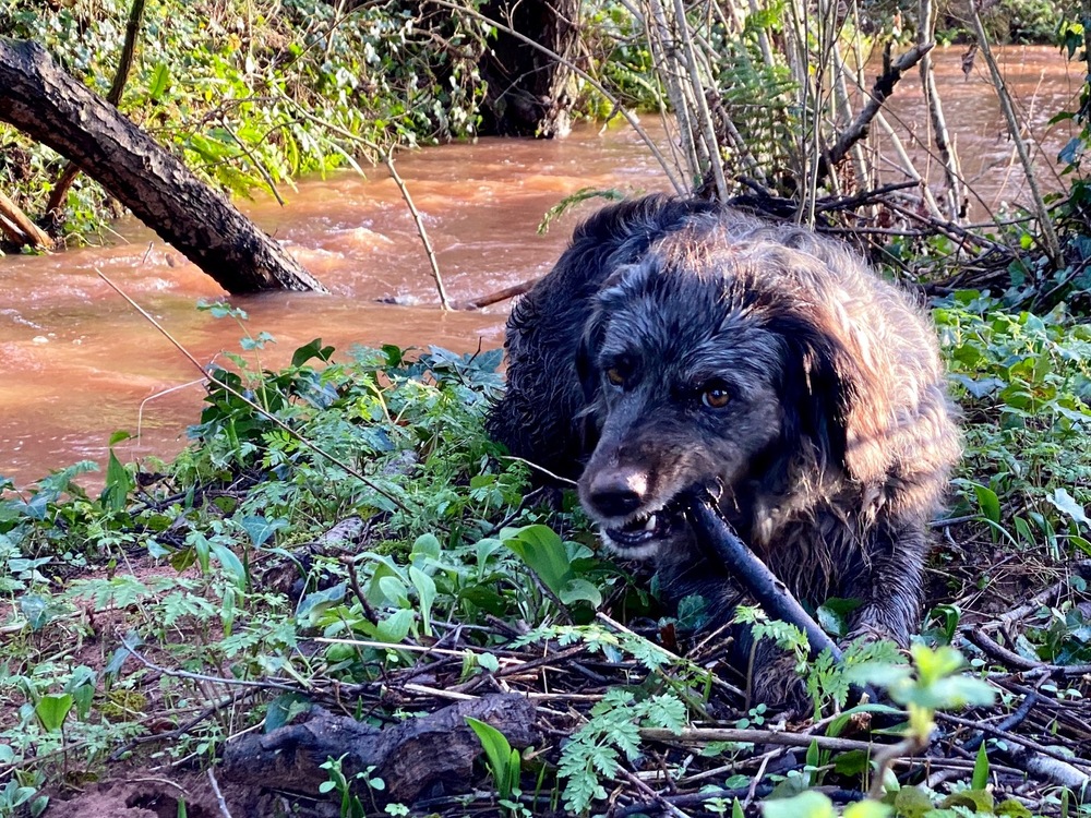 Pepsi and Elbie the farm dogs are still keeping us all company on walks, runs and explorations around the farm. We've recently taken quite a few trips down to Watery lane to check the water levels and play Pooh Sticks! Lots of fun!