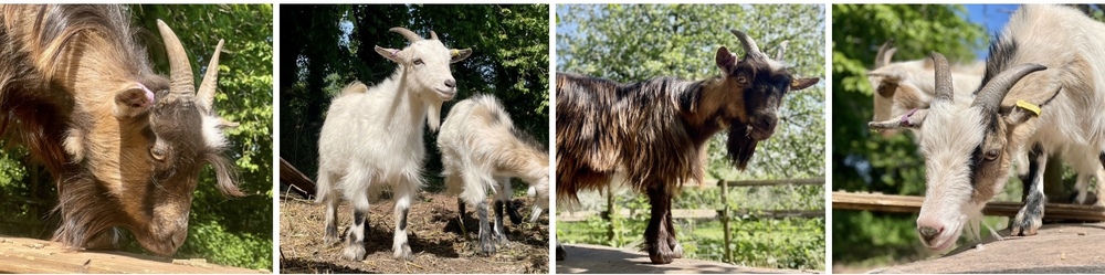 Not only are pygmy goats adorable, but they also make wonderful companions for each other. That’s why Oak, Beech and Birch live together as a close-knit little herd, roaming their spacious orchard home, playing in the dappled sunlight, and munching on hay, fresh grass and the occasional leafy treat.